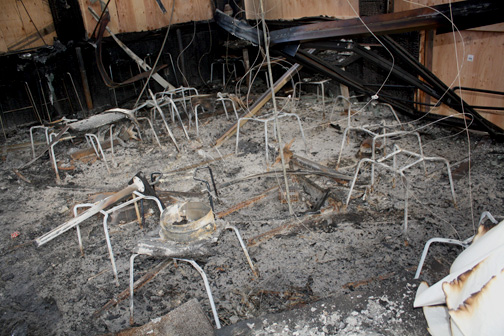 The remains of what were once chairs is all that remains of the dining area of Backdoor Bakery.