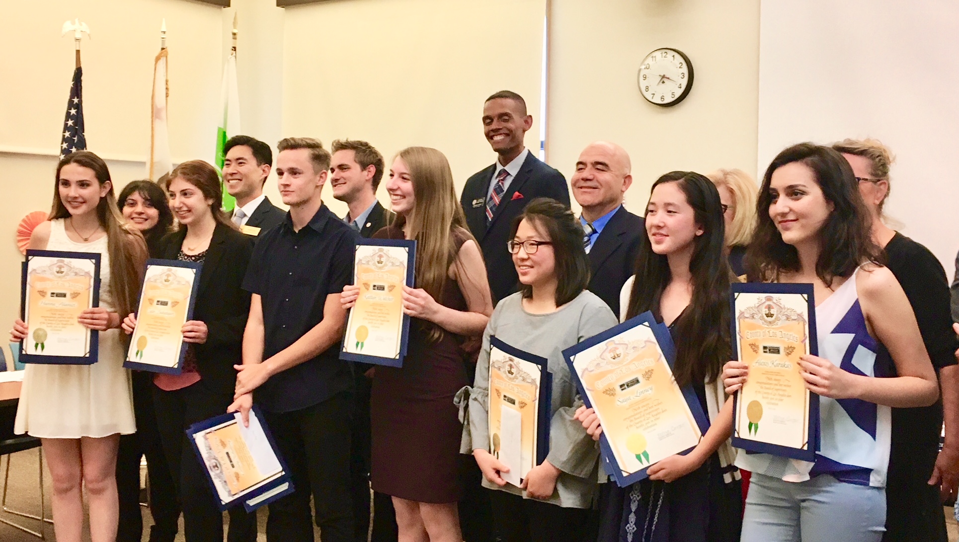 During the meeting, the town council recognized exemplary Crescenta Valley students by the presentation of academic scholarships. The recipients – Alexis Karakas, Talin Bakalyan, Kaitlyn Watcher, Hanna Alanizi, Grady Schilling, Sena Lim, Saya Linney and Jake Schaffer – were chosen by a committee after a series of interviews were held.