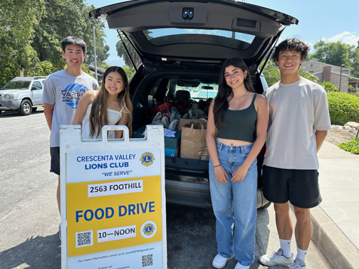 The Crescenta Valley Lions Club held a food donation event last weekend. The Club collected food for the Bailey Center in Tujunga, which is in desperate need of support. The Center has seen an ever-increasing number of those in need during the pandemic that continues today. The Lions Club collected five large canvas bags of products. The donations filled two vehicles. Members of CV High School’s Leos, the Lions Club youth club, from left include Dylan Hsu, Morgan Kim, Ramya Kumarasuriar and William Chin.