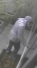 Suspect 2 is described as: Male black, wearing a white towel/bandana underneath a gray hat, gray shirt, blue jeans, black & white shoes, black gloves