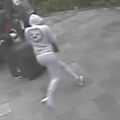 Suspect 4 is described as: Female black, wearing light-colored hoodie with black emblem on back (possibly a lion), light-colored pants, and white shoes
