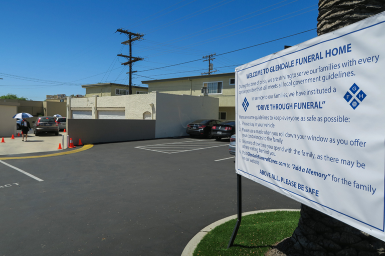In mid-May, he said he had facilitated six drive-thru visitations over a two-week span. Overall, the number of cases Glendale Funeral Home has received during the crisis has been “about the same” as usual.