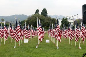 At the entrance to Forest Lawn Glendale, 1,000 U.S. flags stood tall atop eight-foot poles. The poles are aligned to create a display of patriotism remembrance. This “Field of Honor” was the focal point of Rotary’s collaboration with Forest Lawn on Memorial Day. About 150 community members gathered to watch the one-hour ceremony. They were welcomed by Glendale Sunrise Rotary President Melina Sardar.