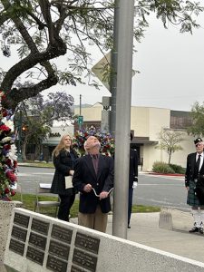 Local resident Bronwyn Schramm then read the names of the fallen listed on the memorial while Michael Morgan, member of the Historical Society of Crescenta Valley, rang a bell after each name.