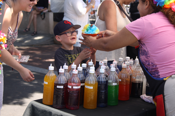 Some community favorites are back including a Kids Zone with a bungee jump and inflatables at Orangedale Avenue, the performance artist Man in White will be in the 2300 block of Honolulu Avenue, and the International Food Court will return to Wickham Way with new vendor Calamaki that features grilled octopus.