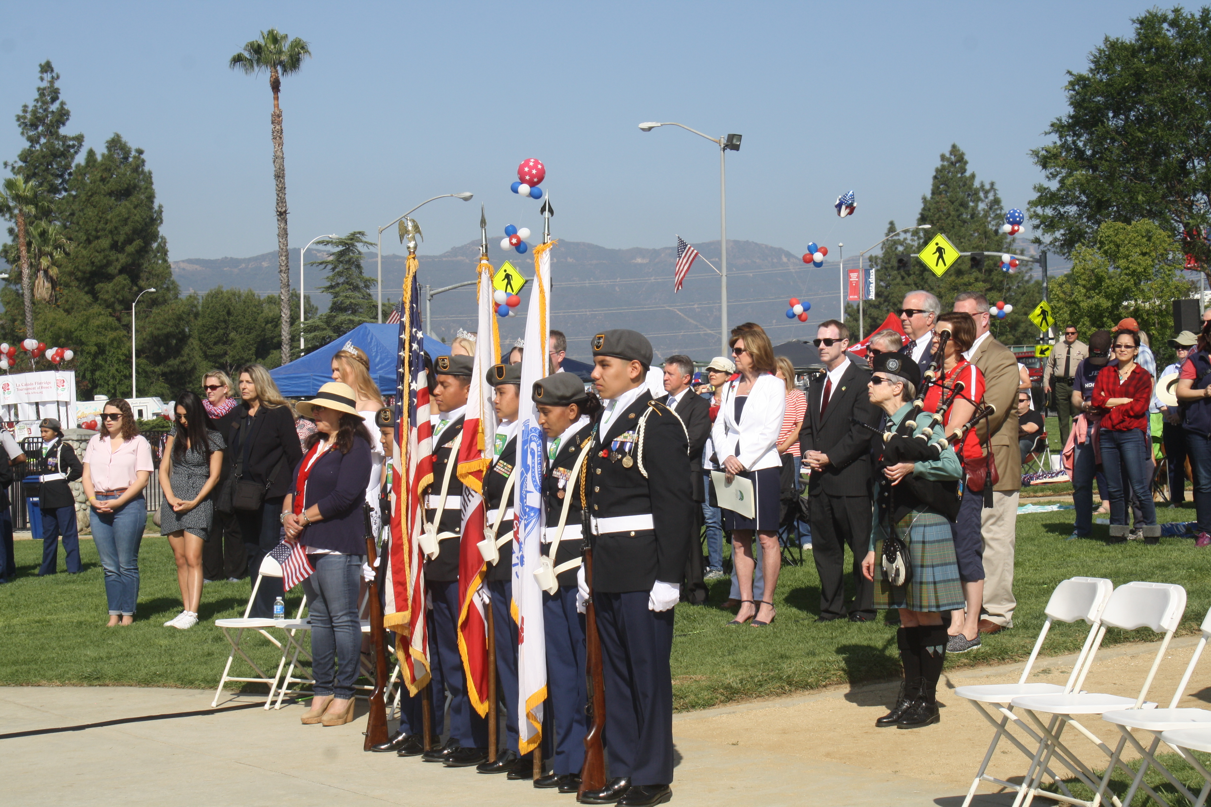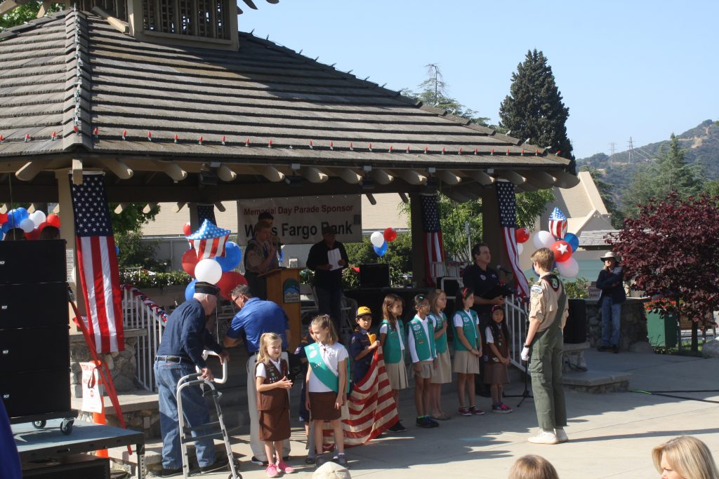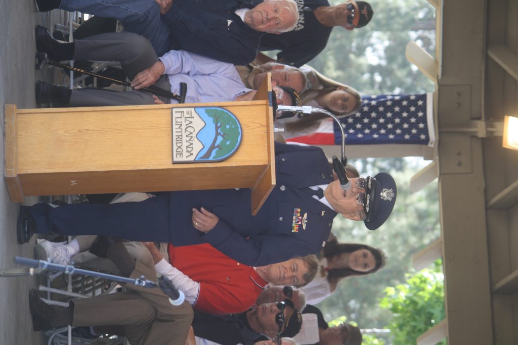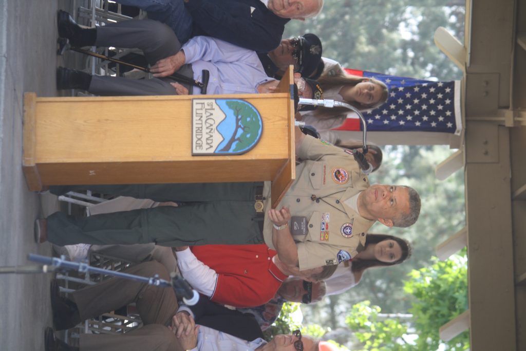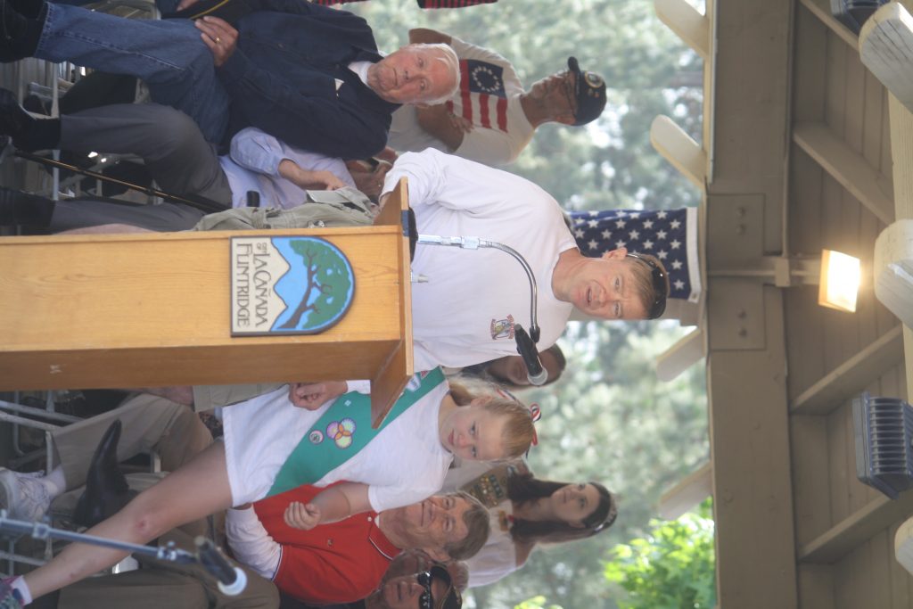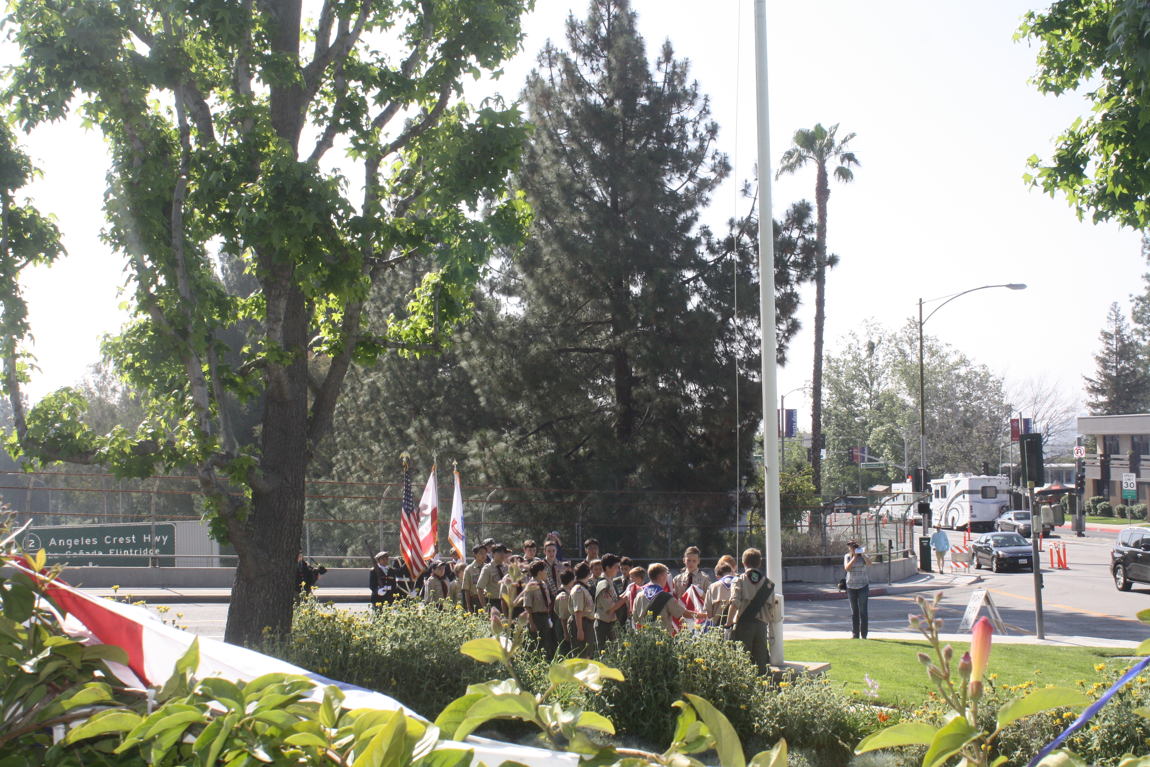 The Memorial Day service in La Cañada Flintridge was a youth-driven event. The Blair High School JROTC color guard began the ceremony with the presentation of the colors. Boy Scouts Leonard Pieroni and John Moore, and Girl Scout Naomi Stephen performed the duties as masters and mistress of ceremonies.