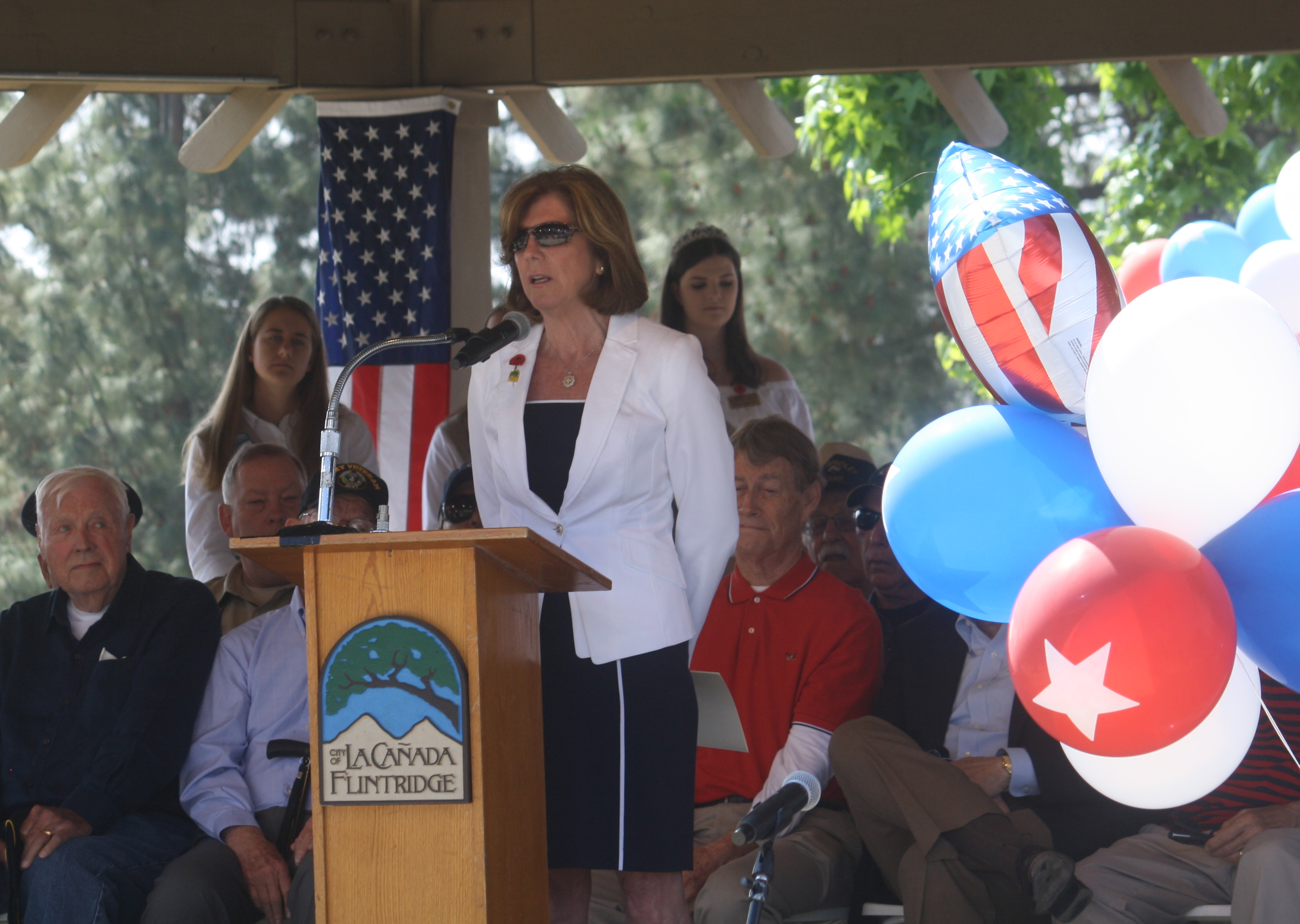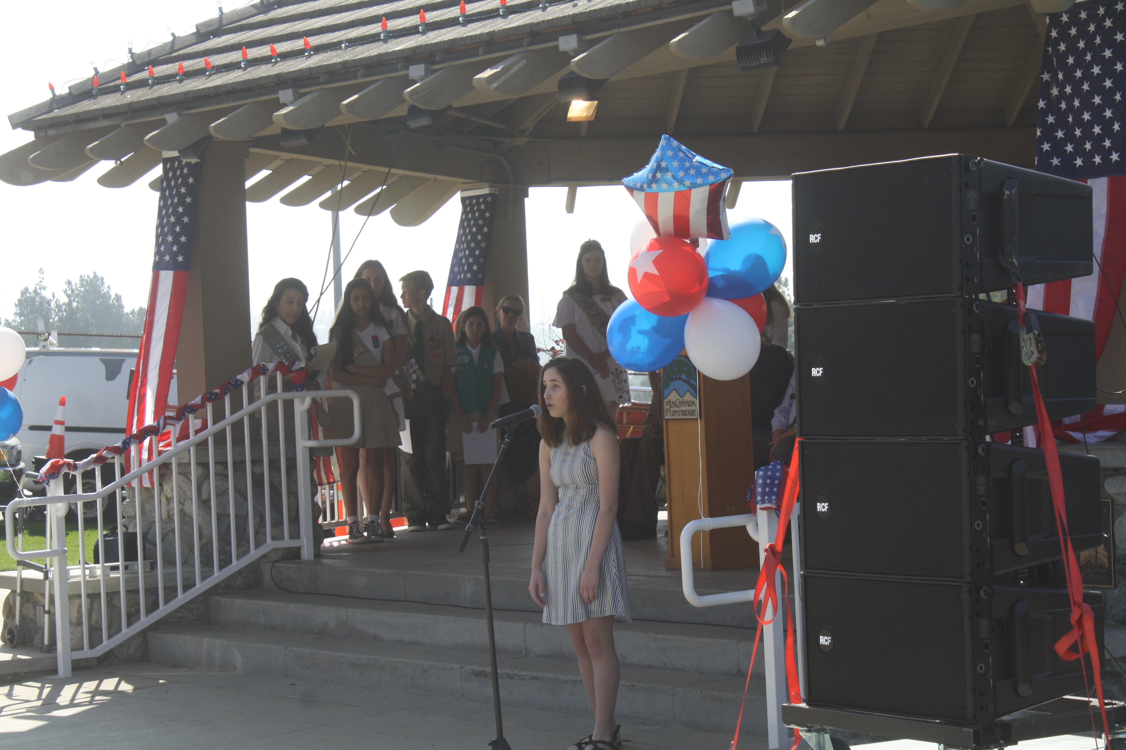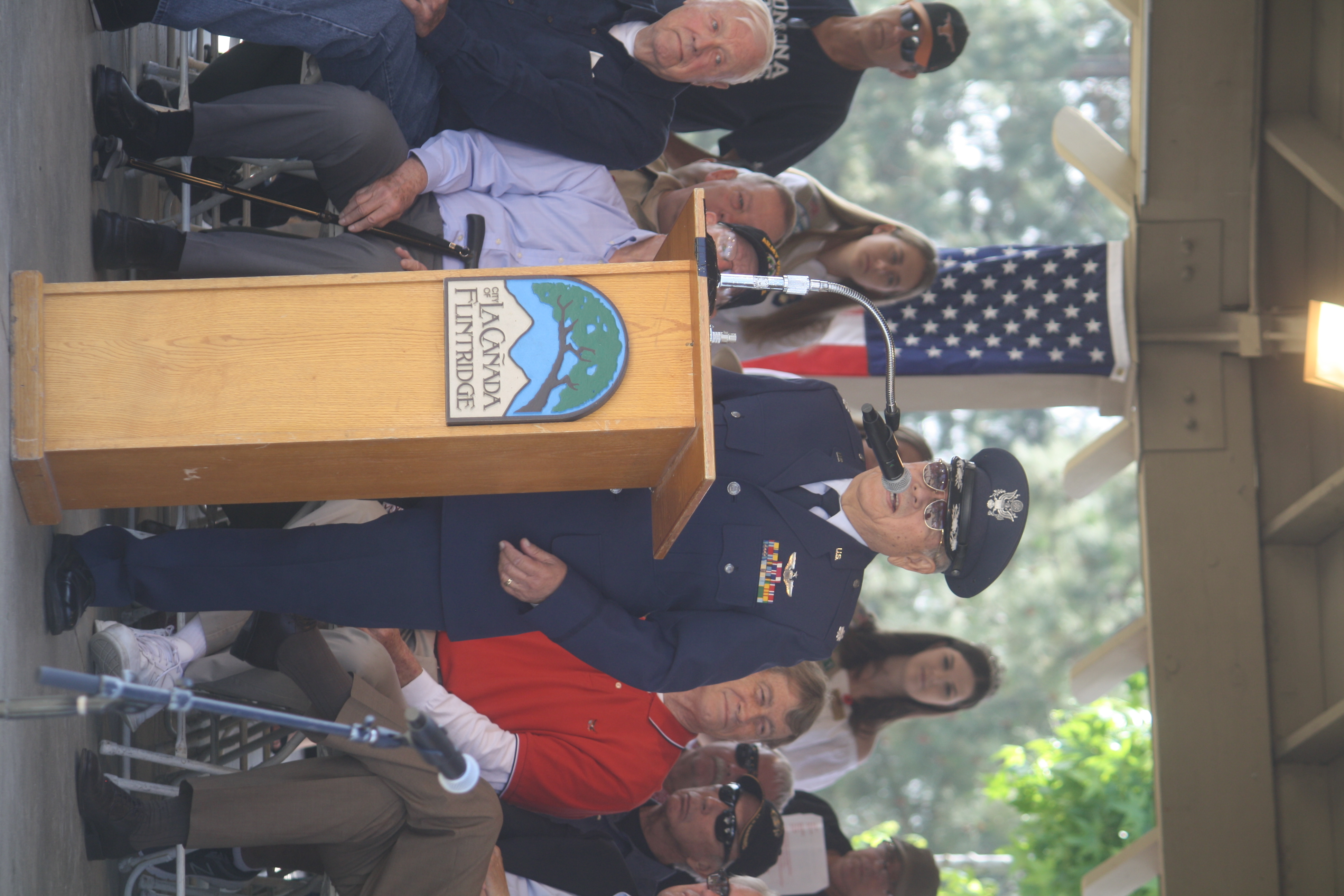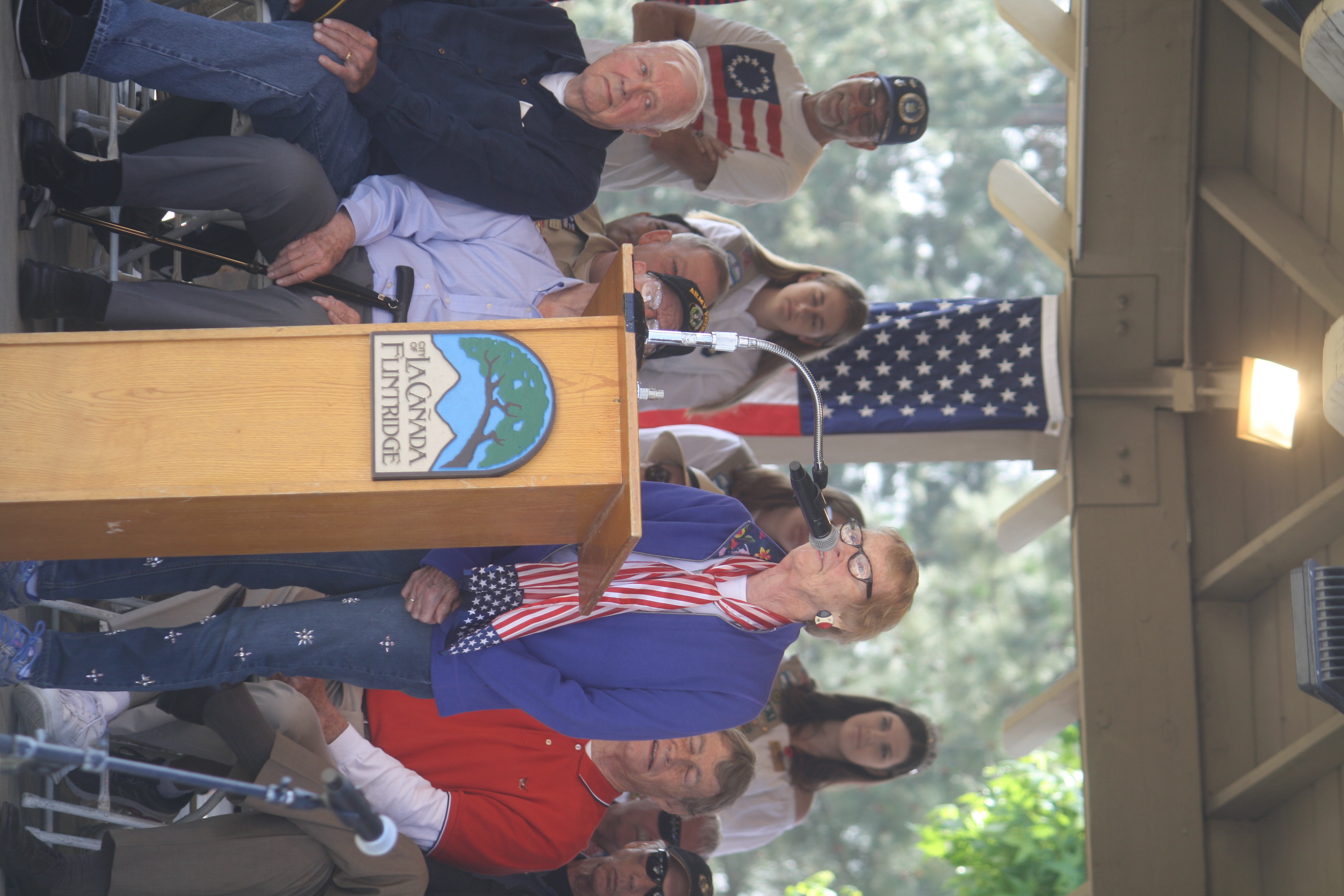 The Memorial Day service in La Cañada Flintridge was a youth-driven event. The Blair High School JROTC color guard began the ceremony with the presentation of the colors. Boy Scouts Leonard Pieroni and John Moore, and Girl Scout Naomi Stephen performed the duties as masters and mistress of ceremonies.