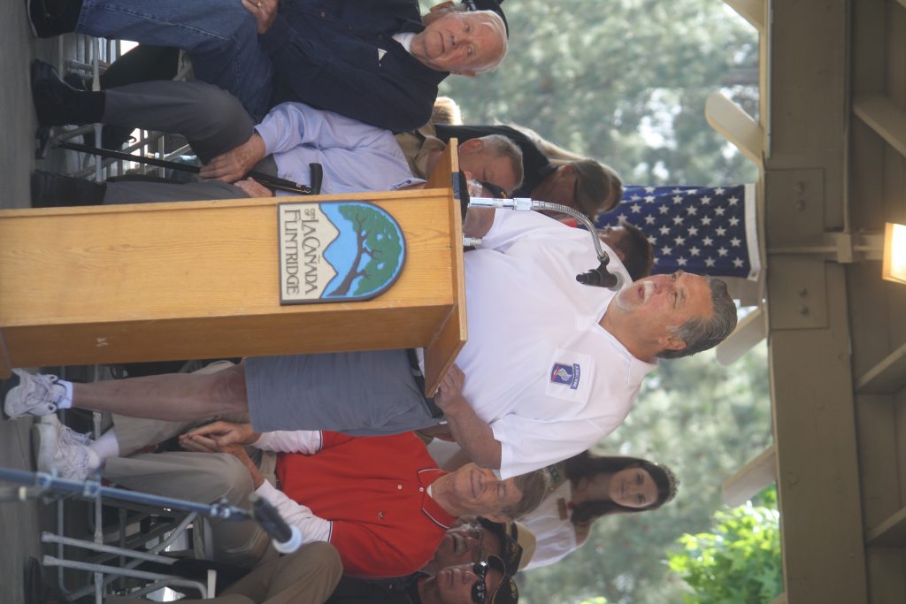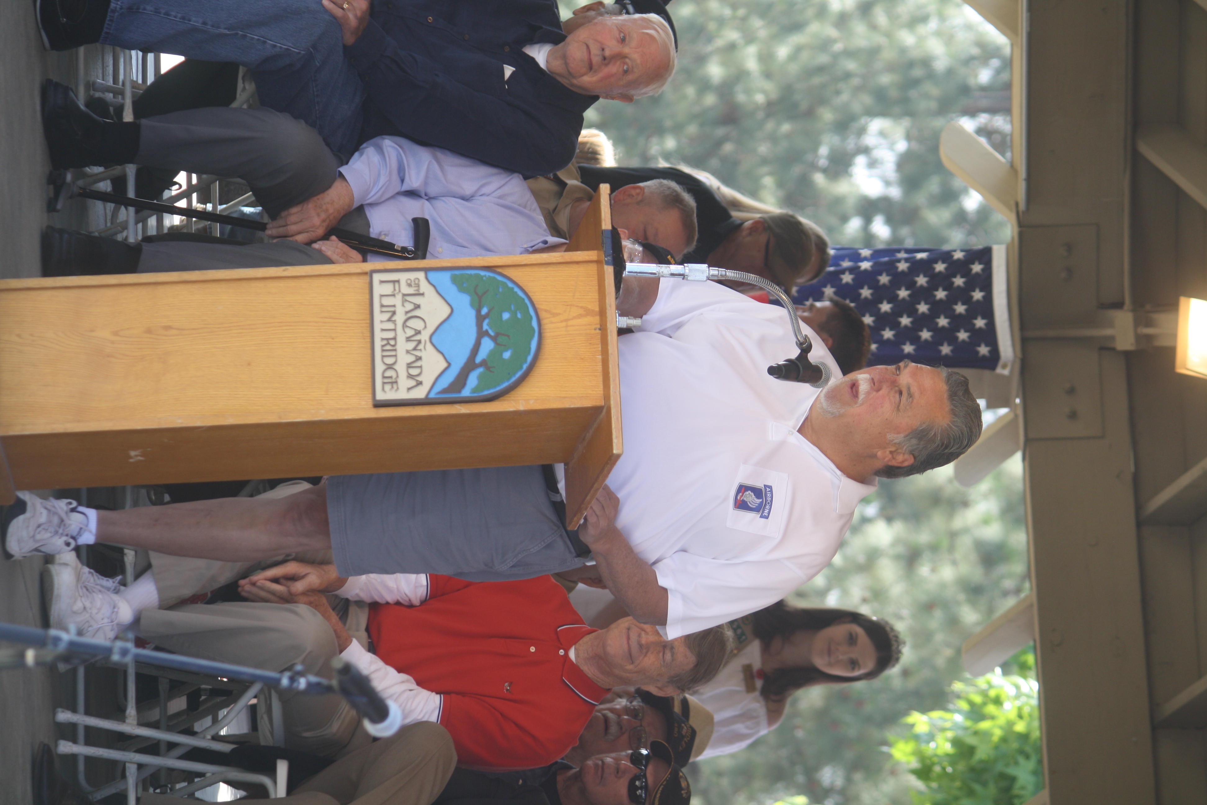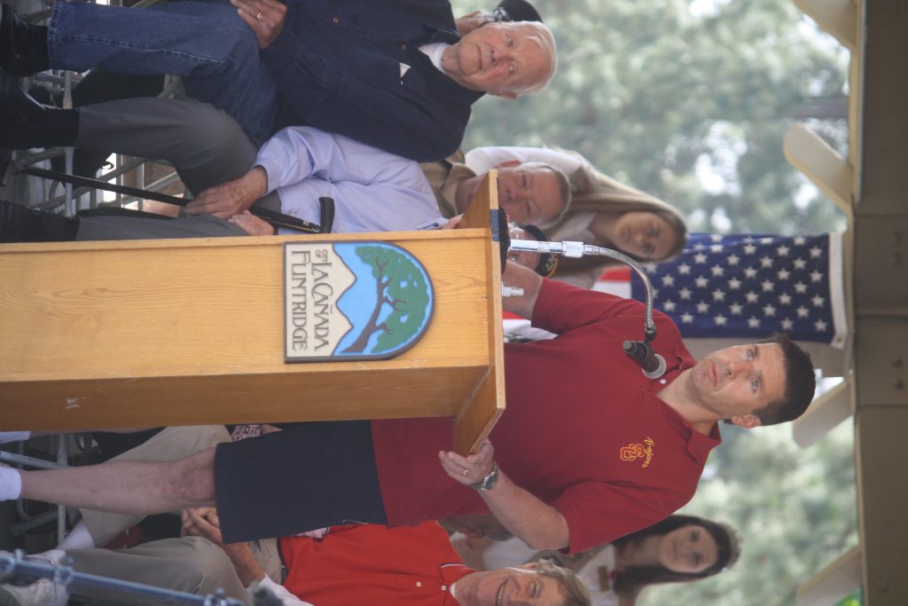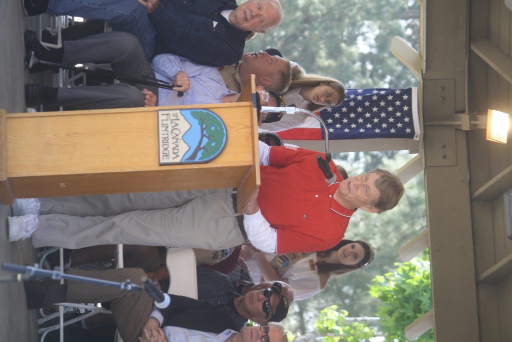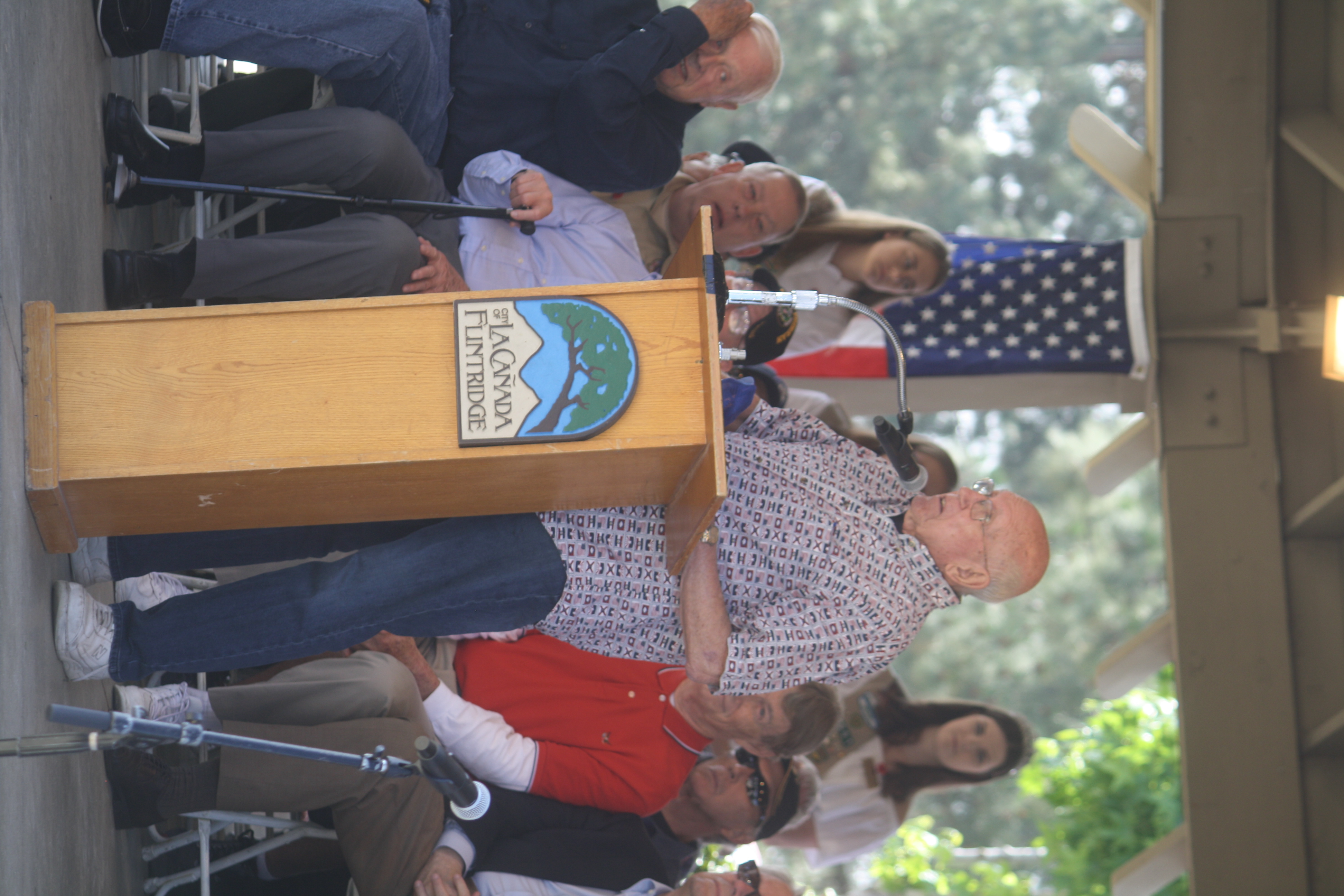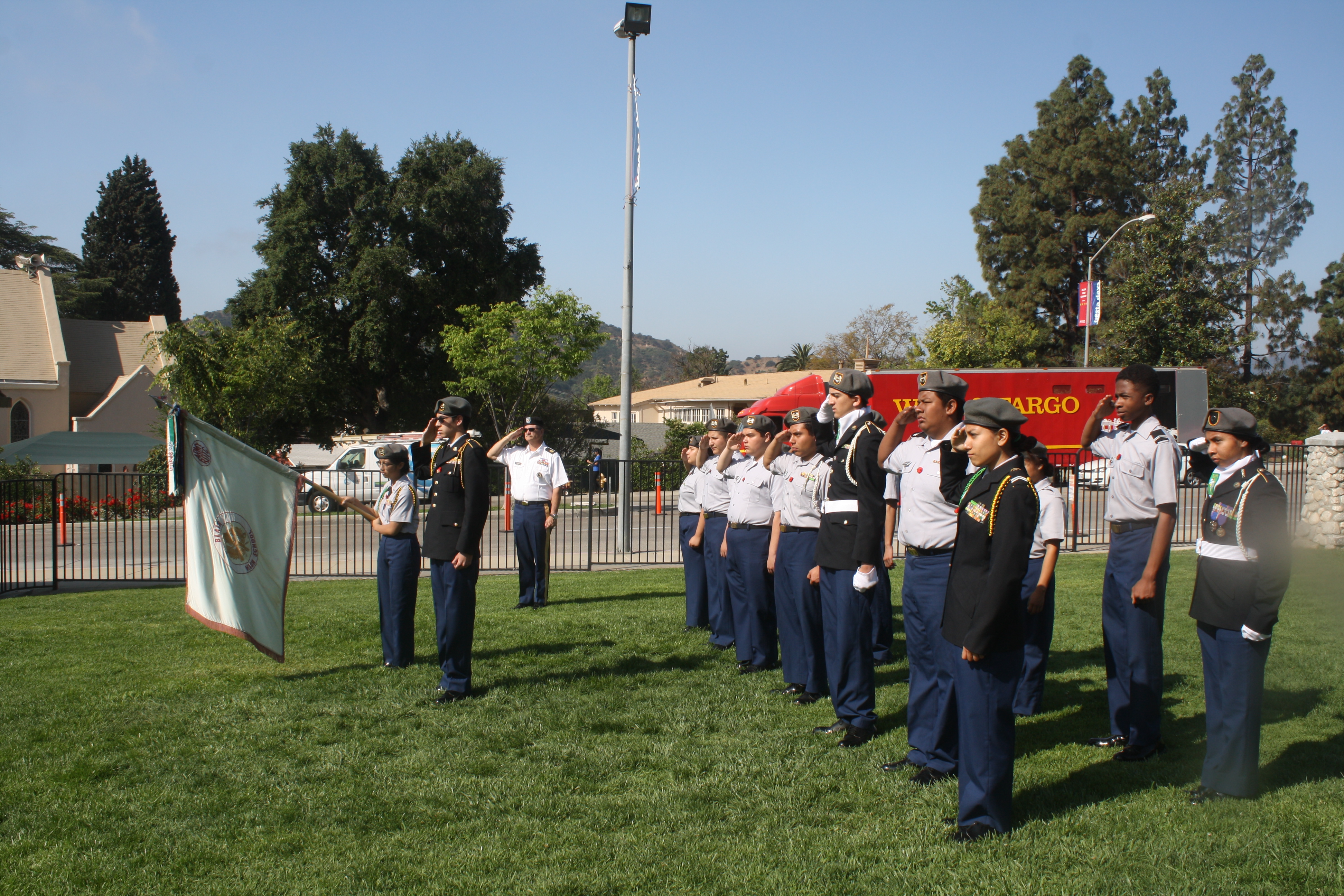 The Memorial Day service in La Cañada Flintridge was a youth-driven event. The Blair High School JROTC color guard began the ceremony with the presentation of the colors. Boy Scouts Leonard Pieroni and John Moore, and Girl Scout Naomi Stephen performed the duties as masters and mistress of ceremonies.