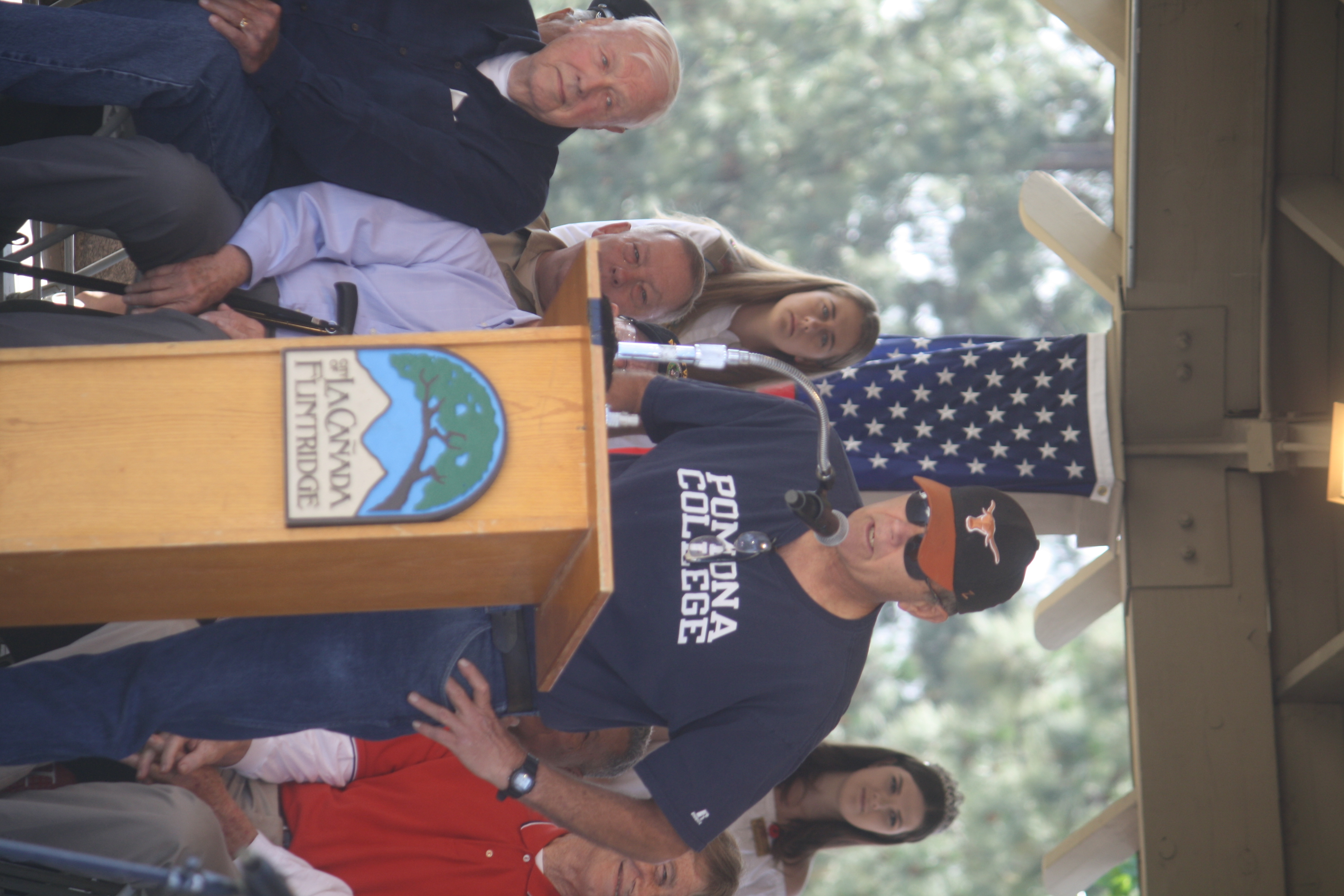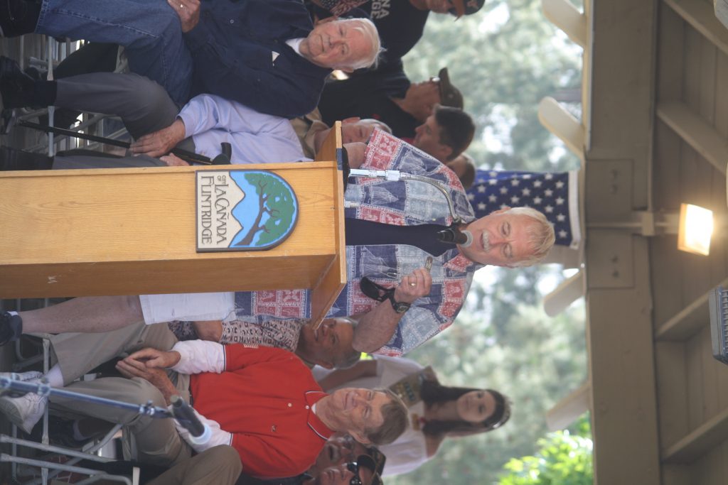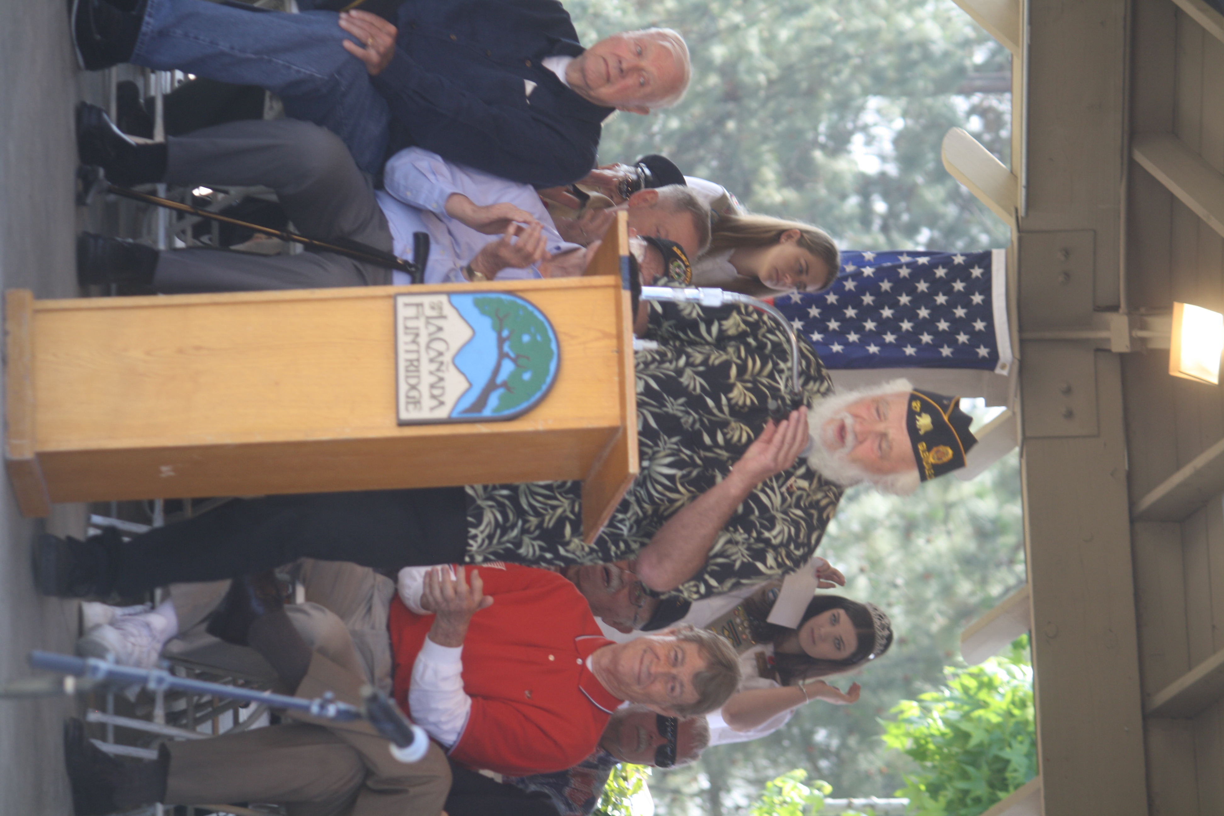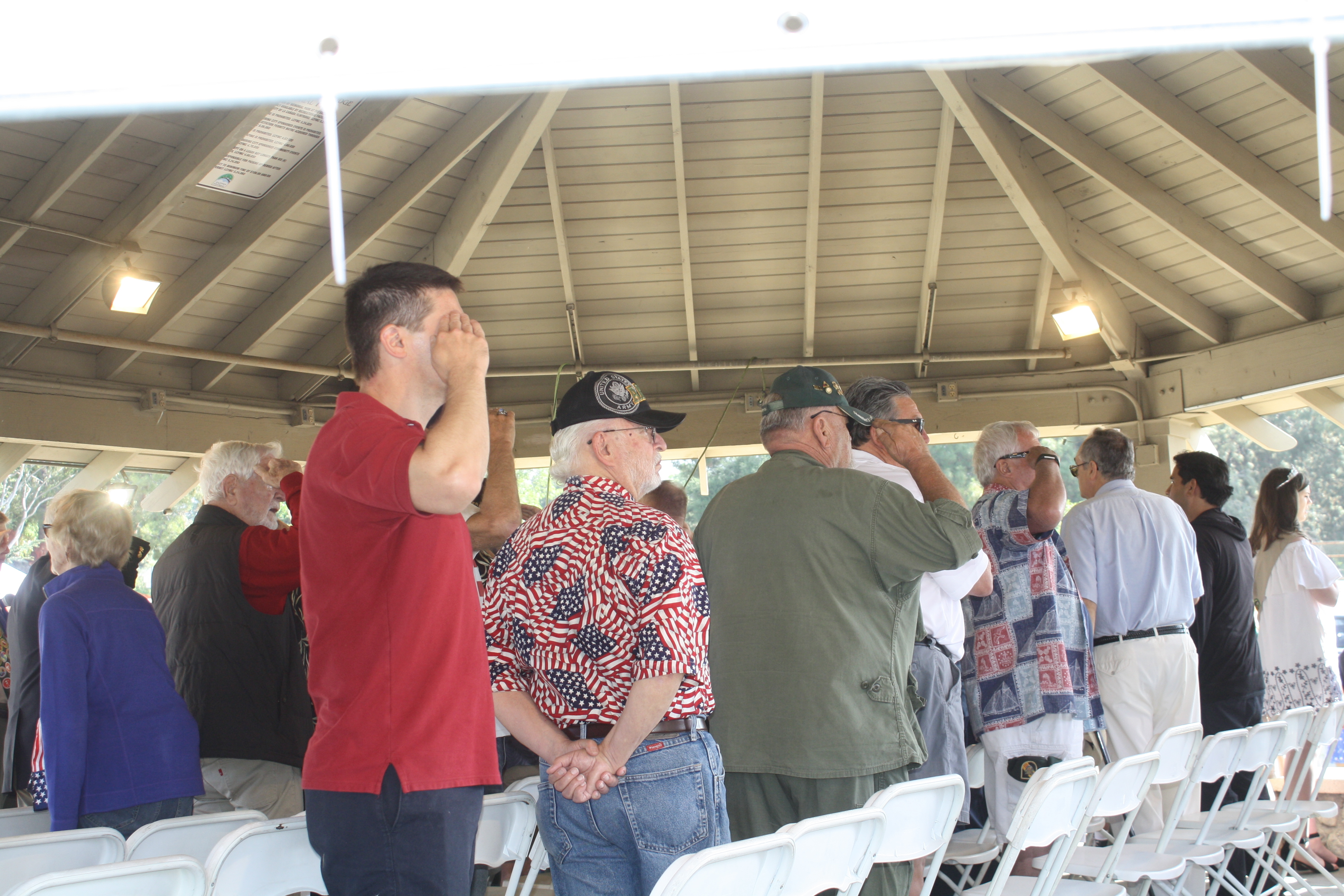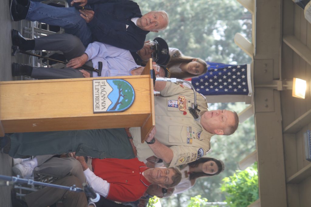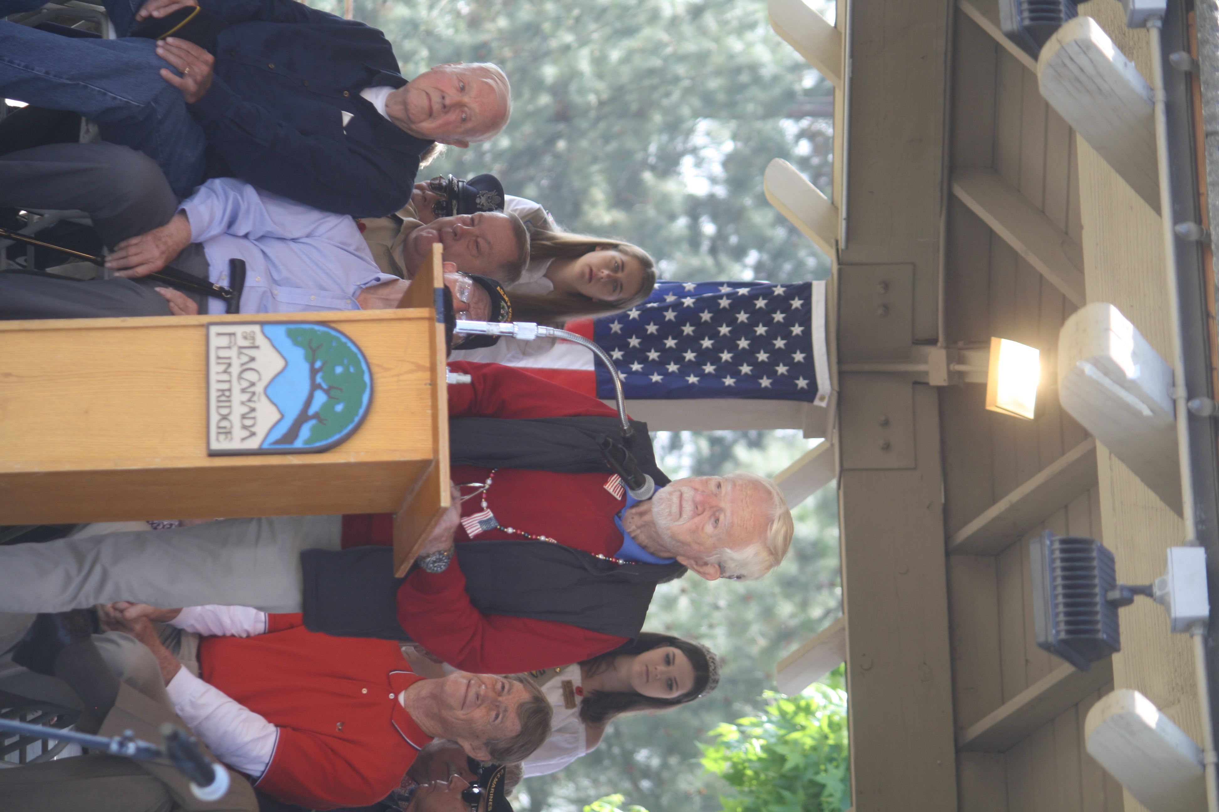 At Two Strike Park in La Crescenta another observance was held for the community. The service was centered around the Memorial Wall, which was installed as a joint effort between the Veterans of Foreign Wars Post 1614 and the American Legion Post 288 to honor the local resident servicemen who were reported missing or killed in action during World War II, the Korean War, the Vietnam War and the Iraq War. This year, the keynote address was delivered by Capt. Ralph Scaffidi, U.S. Navy Reserve – Retired. He gave a bit of history, entwined with personal observation, and summed up the holiday perfectly.