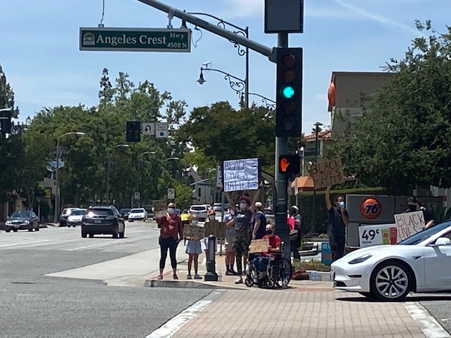 A protest was held earlier today in La Canada at the corner of Angeles Crest and Foothill Boulevard regarding the death of Minnepolis man George Floyd who died last week while in the custody of that city’s police.
