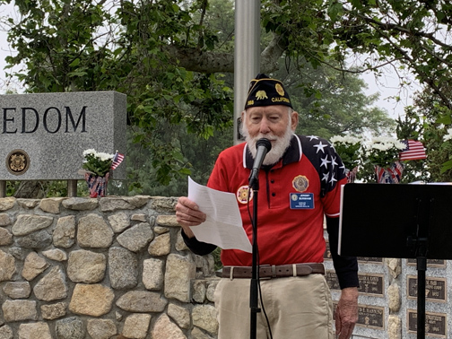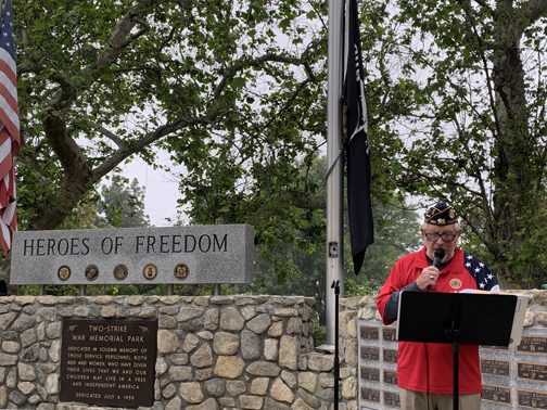 A Memorial Day observance was held at Two Strike Park on Monday morning presented by American Legion Post 288 and Veterans of Foreign Wars Post 1614. All the names listed on the park’s memorial wall were read at the event; then, as is the veterans’ practice, they chose three of those names to spotlight.