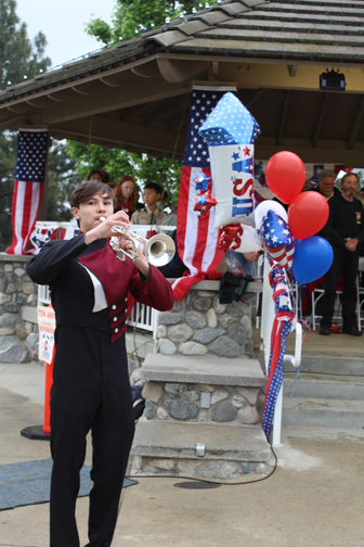 In La Cañada, despite the never-ending drizzle, the Memorial Day service went off without a hitch. The park’s gazebo, decked out in red, white and blue balloons, was the setting for patriotic speeches, recitations and songs. The ceremony opened with local children holding the American flag that flew over Pearl Harbor in 1941. Girl Scout Ashley Dietrich was emcee extraordinaire as she introduced the Boy Scout color guard, the La Cañada High School marching band, LCHS singers, and community students who gave patriotic talks.