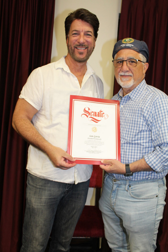 The highlight of the program was the presentation of a state commendation to Garcia’s son, Ted Garcia, by California State Senator Anthony Portantino. The brief ceremony was presided over by Don Baldaseroni, Burbank Historical Society president.