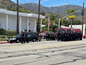 A procession for fallen Los Angeles County firefighter Tory Carlon traveled eastbound on the Foothill (210) freeway to Crippen Mortuary on Honolulu Avenue on Saturday.