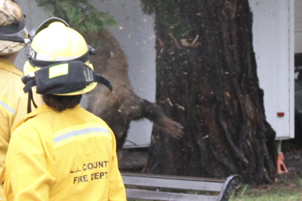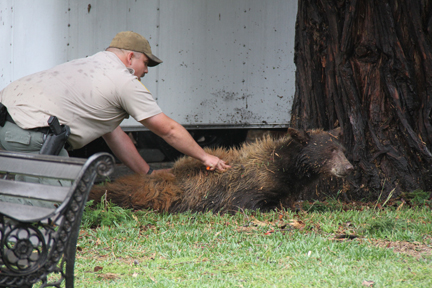 Last Thursday, a quiet street in La Cañada saw a new resident move in. An adult female cinnamon bear took up residence in a tree on Burgoyne Lane just north of Foothill Boulevard. The current occupant of the home, not ready to move out yet, called the authorities to come and remove the bear. The California Dept. of Fish and Wildlife responded alongside the LA County Fire Dept. and the LA Sheriff’s Dept., to make sure the bear was safely removed and relocated.