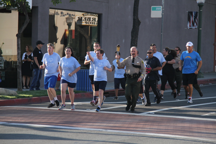 The event kicked-off with the Law Enforcement Torch Run, in which the Special Olympics torch was brought from the Crescenta Valley Sheriff’s Station down to Town in the Montrose Shopping Park. Lt. Mark Slater carried the torch accompanied by the Glendale Special Olympics team. They were greeted at Town with throngs of applauding and cheering fans.