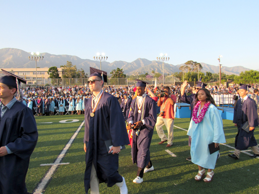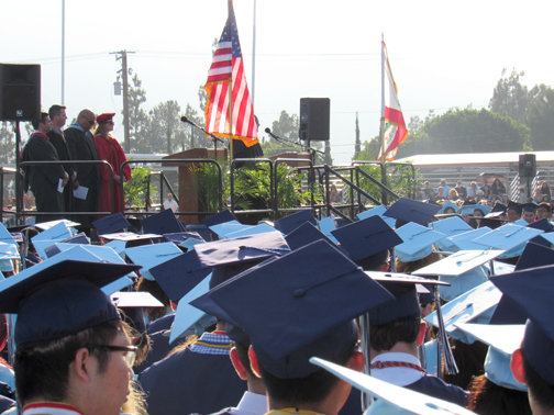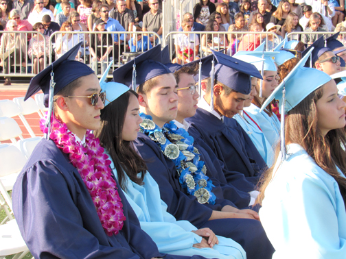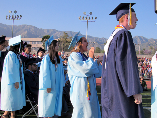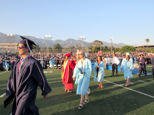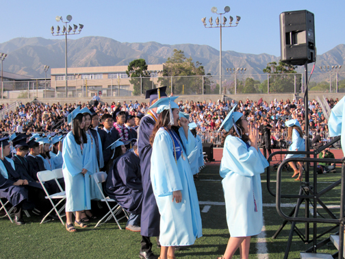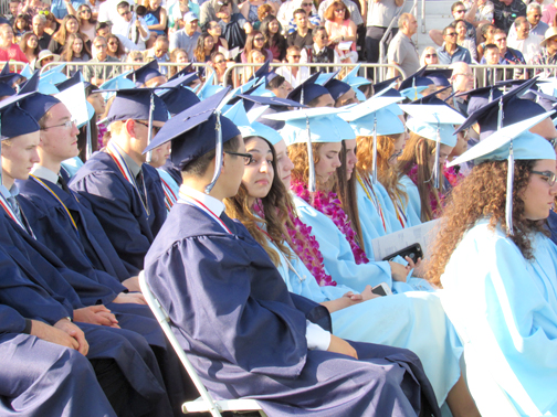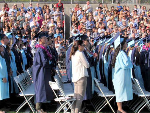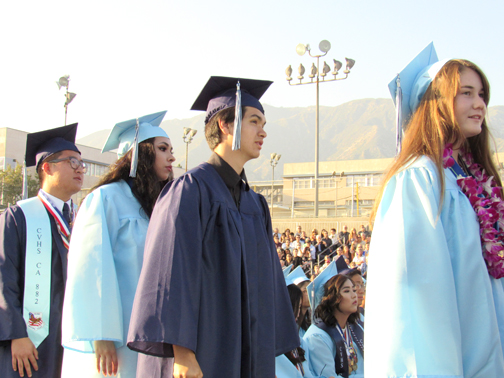 The student speeches at the commencement at Crescenta Valley High School’s Osborne Field on Thursday night reflected a generation that may have grown up in turbulent times, surrounded by negativity and where world violence is a more commonplace occurrence than in the past, and yet instead of combating negativity with more negativity this class promoted togetherness, family and community.