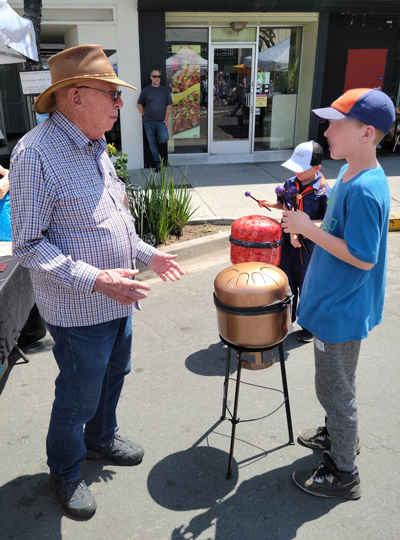 At the Arts & Crafts Festival he set up several of the colorful drums so people could try them. Melodic music filled the air near his booth as shoppers gently struck the drums.