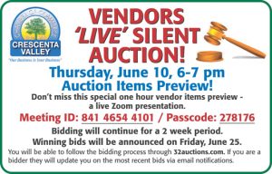 The CV Chamber of Commerce is hosting a vendors’ auction that kicks off tonight, Thursday, June 10 at 6 p.m. with a live Zoom presentation. The Zoom event will give buyers the chance to see the variety of items up for bid that include memberships to the YMCA of the Foothills, a gift certificate for stonework paving, and even a three-day, two-night stay at a Palm Springs condominium.