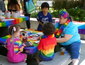 Staff and volunteers from Glendale’s Library, Arts, & Culture Dept. offered buttons to paint, friendship bracelet kits to assemble and information about summer programs at the city’s libraries including PRIDE-related events (https://www.eglendalelac.org/pride-month).