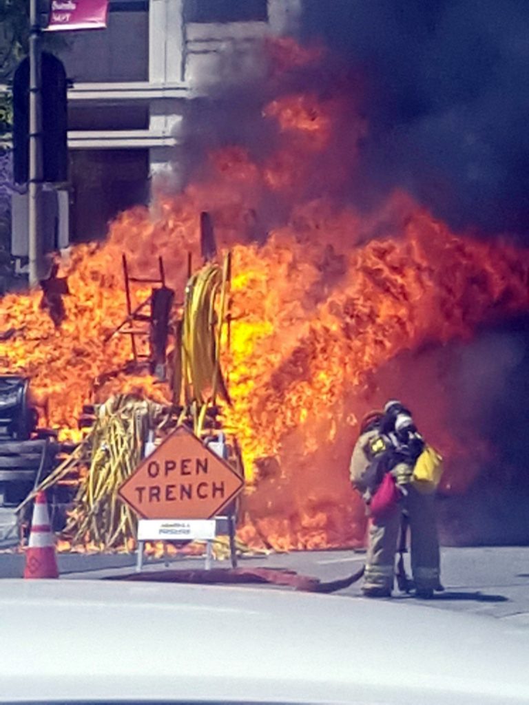 A company that was contracted by Southern California Gas was in the area of Glendale and Broadway avenues on Wednesday afternoon when a vehicle malfunctioned, causing it to become engulfed in flames. There was no natural gas involved; it was strictly just the vehicle affected. There were no injuries reported, according to Christine Detz, spokeswoman for Southern California Gas.