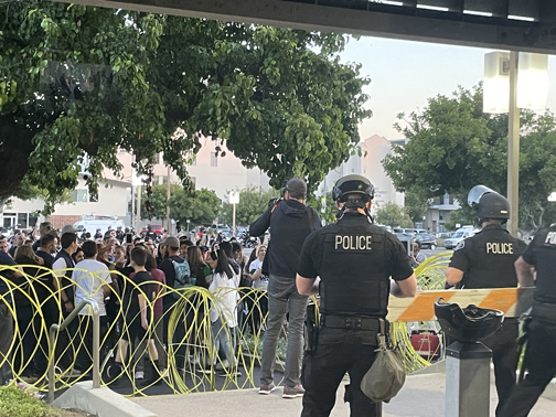 Tuesday was the last school board meeting of the academic year. According to the Sgt. Victor Jackson of the Glendale Police Dept. there were no arrests made during the protests. Inside the meeting, the atmosphere was much more volatile than the prior meeting. There was more heckling from both sides of the issues when people were at the podium. One of the lowest points was when a mom wanted to thank GUSD for its support after she received “life changing” medical news about her child. She began sobbing as she tried to talk about her situation but, at the end, was heckled by a few in the audience.