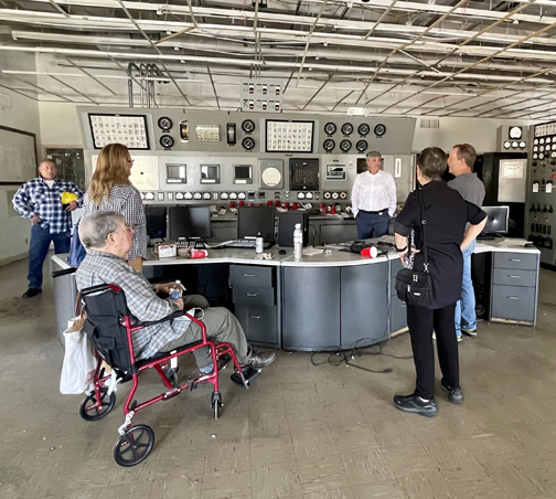 The extended family of Lauren Grayson visited the Grayson Power Plant (GPP) on Tuesday, June 20 for a final tour of the facilities. Grayson was chief engineer and general manager of the plant that was his namesake. The family present on Tuesday included his son David Grayson and daughter Cynthia Pearson, grandson David Pearson and granddaughter Elisabeth Zahm and great-grandson and great-granddaughter Caden and Lauren Zahm. Mark Young, general manager of Glendale Water and Power (GWP), and John Escudero, plant superintendent, began the tour by saying a little about their personal histories.