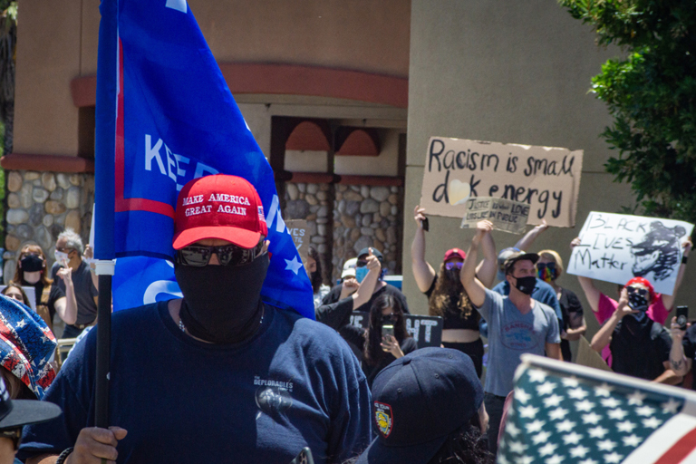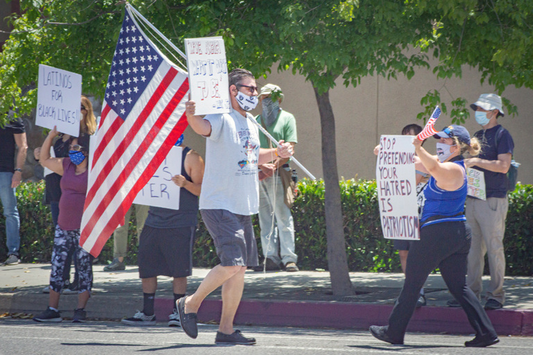 Dual protests, one for Black Lives Matter and the other for Blue Lives Matter, occurred across the street from each other on Friday afternoon near Lowell Avenue and Foothill Boulevard.