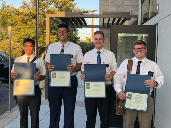 The Crescenta Valley Town Council thanked four young men who are currently on a mission in the area from the Church of Latter-day Saints for their help during the Crescenta Valley Annual Prayer Breakfast. From left are Elders Allen, Shirk, Harris and Salonga, who accepted certificates from the CVTC.