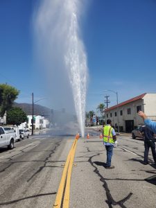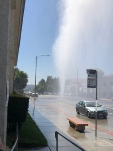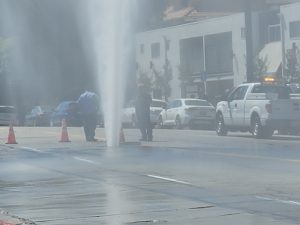 A tower of water erupted in the westbound lanes in the 2700 block of Honolulu Avenue apparently shooting a manhole cover into the air. CV Water District crews and emergency personnel are on scene making repairs; traffic in both directions on Honolulu has been closed.