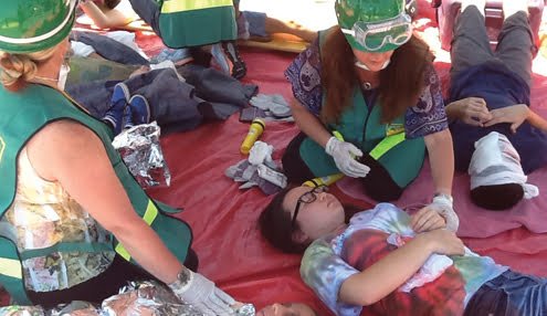 GUSD members surround “victims” during an earthquake scenario as part of their CERT training.