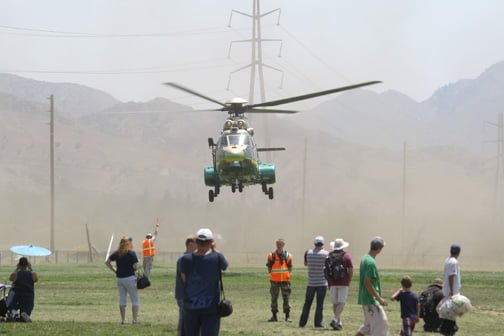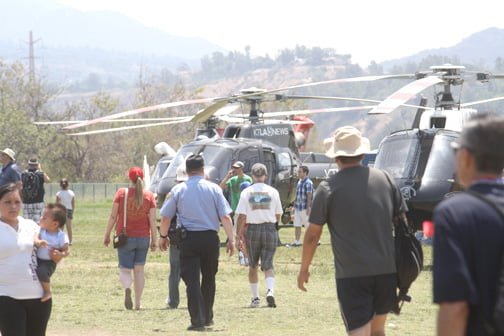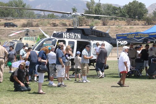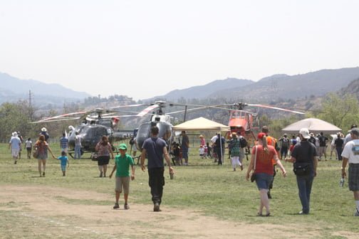 At Hansen Dam, attendees gathered to watch a number of helicopters run airborne exercises and they had the opportunity to inspect a number of aircraft on the ground.