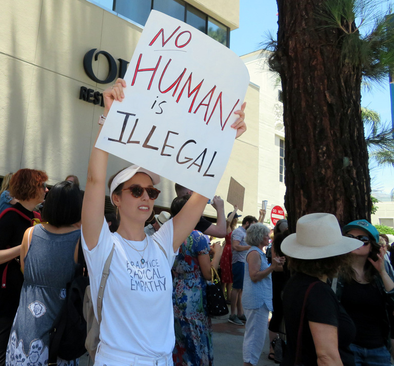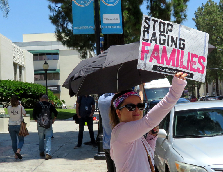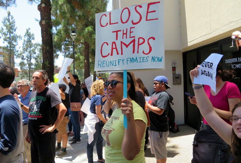 More than 300 people demonstrated outside Congressman Adam Schiff’s district office in Burbank on Tuesday at noon in response to outrage simmering at the treatment of immigrants at the southern border. The Burbank rally was one of a reported 187 similar actions organized across the country under the banners “Close the Camps” and “Families Belong Together.”