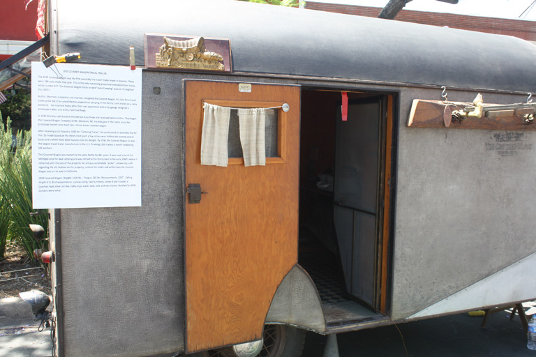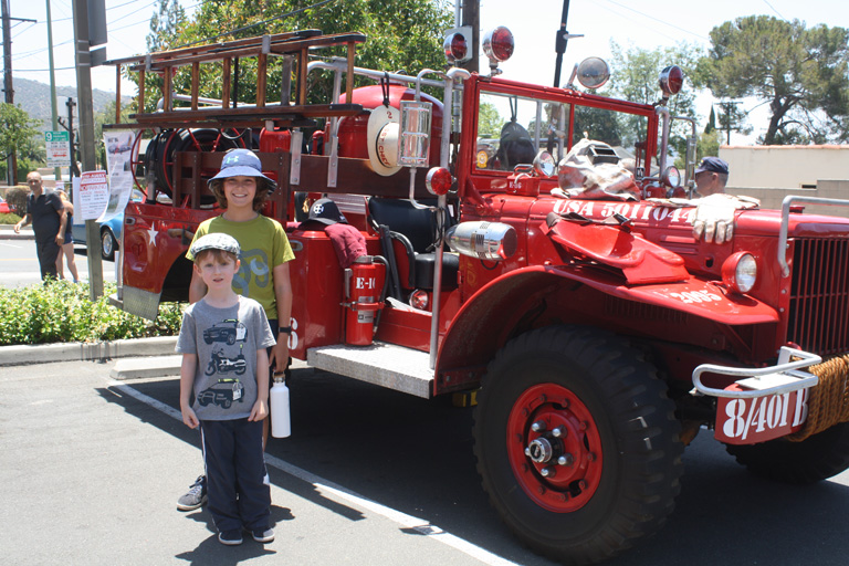 they might not know and older folks to walk down memory lane. In addition to classic cars, a Helms Bakeries truck was on display. A 1933 Covered Wagon trailer, the first assembly line travel trailer made in America, reminded people how traveling the country used to be done. An E-16, owned by local resident Bob O’Neil, caught the eyes of boys Rory, 11, and Ramsay, 5, Campbell.