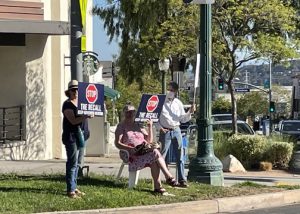 Members of the community demonstrated against the recall of Governor Gavin Newsom recently at the corners of Honolulu Avenue and Ocean View Boulevard. Those at the corners were against the recall because of the money it will cost the state to hold the recall election – reports have an estimate of $215 million, according to the states finance department.