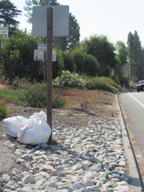 On Saturday morning, as community members were volunteering at the monthly scheduled cleanup of the La Crescenta off-ramp of the Foothill (210) freeway, they found more than just the typical discarded fast food trash. They came across garbage bags that were filled with what looked like marijuana.
