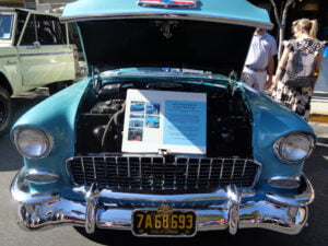 Chris Rodriguez attended the show for the first time to show off his 1974 Bronco, although his father has been coming to the car show “for years.” His father’s car – a 1955 turquoise colored Chevy Bel Air with two doors and a hard top – garnered a lot of attention.
