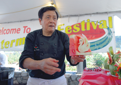 The Watermelon Pavilion will feature cooking and carving demonstrations from expert chefs, such as Chef Joseph Poon of Philadelphia, Chef Jesse Sanchez of the Los Angeles Mission School Culinary Dept., students from The Art Institute of California-Inland Empire, a campus of Argosy University, Culinary Arts Program, located in San Bernardino and Chef Daly Thompson of Memphis Bar-BBQ Catering, previous owner of The Pig, Memphis-style barbecue in Los Angeles and Universal City Walk.