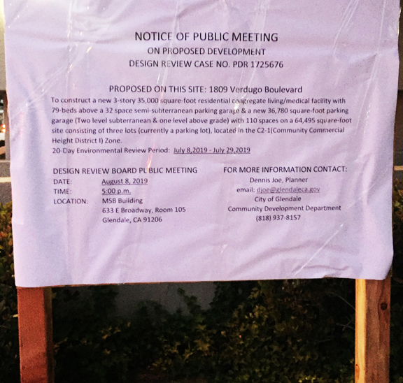 This is not the first time these property owners and tenants have been notified of this proposed development. In November 2018 they received a notice from the City of Glendale concerning the proposal and a Design Review Board meeting; however, that was abruptly canceled.