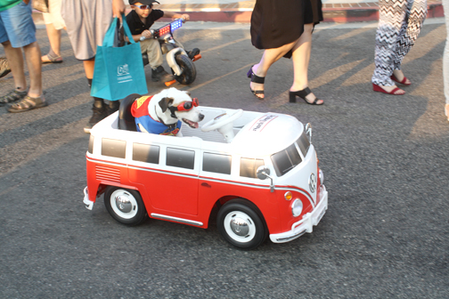 Cars and bikes weren’t the only things to see. One man brought his cockatoo, which delighted the Simonian family. Another man brought a small VW van that was just large enough to cart around his pup, which was decked out in cape and goggles.
