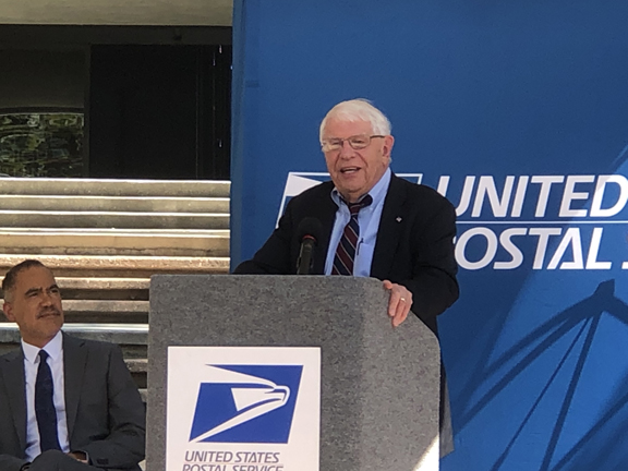 From left are Alfred Santos, USPS district manager, Robert Parker, former astronaut, Michael Watkins, JPL director, Andrea Razzaghi, associate director for NASA management office and Michael Greene, JPL director for communications and education.