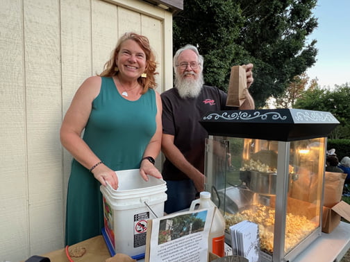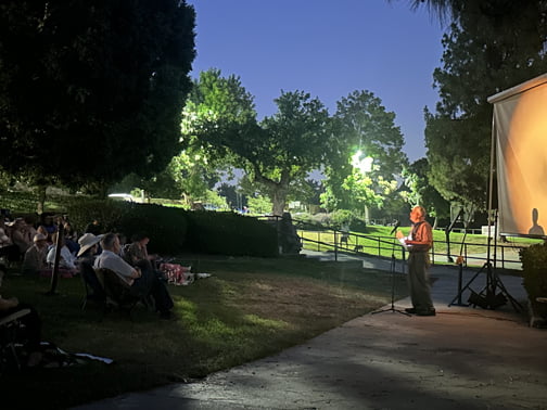 Also available for audiences were popcorn and snacks as well as drinks. Mike Lawler of the Historical Society of the Crescenta Valley, who also coordinated the event with the Los Angeles County Dept. of Parks and Recreation, manned the popcorn machine and Kate Linkchorst oversaw the rest of the concessions. Live ragtime piano music, which usually accompanied the silent movie night, was unfortunately unavailable; however, recorded audio of the piano music accompanied the film to the satisfaction of the audience.