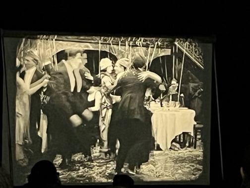 Much like the silent movie nights of old, the films were projected onto a screen by a 1909 Power’s 6 Motion Picture Machine provided and operated by Joe Rinaudo of the historical society. The Motion Picture Machine projected some of Rinaudo’s vintage 35mm films, some of which are over 100 years old.