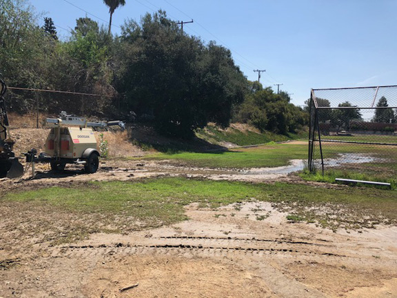 On Saturday, July 28 at around 5 p.m., a 16-inch water main was damaged by a Southern California Edison subcontractor that was installing new power poles near the intersection of Raymond Avenue and Los Olivos, on the northwest end of Rosemont Middle School’s soccer field. Crescenta Valley Water District crews worked to repair the pipe.