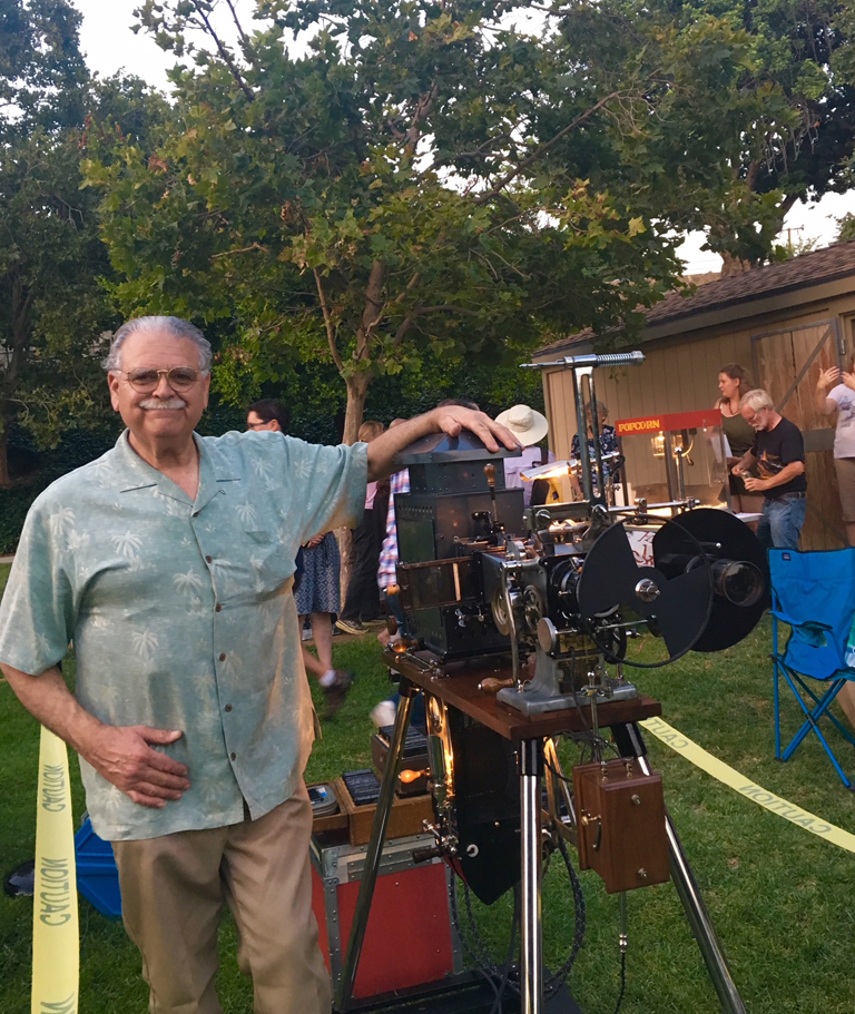 Like itinerant projectionists of the past, Rinaudo travels to small towns, providing entertainment through silent film. Like many communities in the early 1900s that did not have theaters to watch the films of the era, Saturday’s outdoor venue of the silent movie night added authenticity to the event.