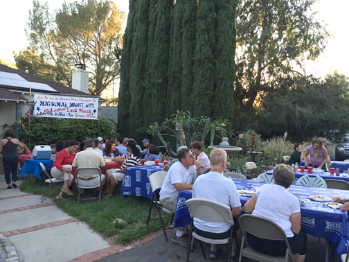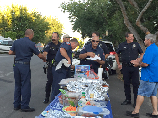The potluck picnic/barbecue is an annual event held by local neighbors and leaders of the Neighborhood Watch including Ray and Susan Stewart and Edith M. Fuentes.