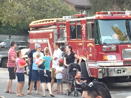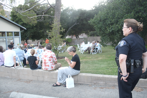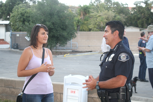 Among the 45 NNO events throughout Glendale was the annual Sycamore Woods Neighborhood Watch event held on the grounds of the Crescenta Valley Water District at 3730 Glenwood Ave. Members of the Glendale Police Dept., including Chief Robert Castro and K-9 Unit Officer Rolando and his German shepherd Branko, and Glendale firefighters joined neighbors in talking about crime prevention.