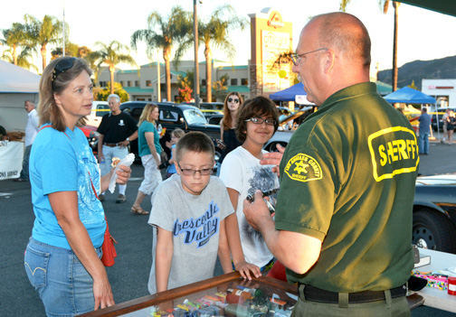 The Crescenta Valley Sheriff’s Station hosted its fifth consecutive National Night Out event at the Ralph’s parking lot in the 2600 block of Foothill Boulevard. The event was considerably larger than in past years as the roped off area of the parking lot encompassed, among other things, a fire truck, a Montrose Search & Rescue truck, numerous classic cars and more.