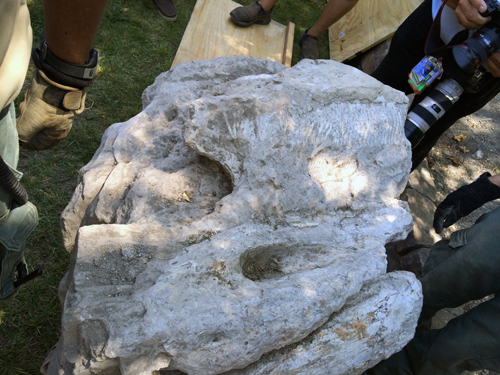 “I found this thing, about 200 yards away from where it is now, in 1978 when I was a junior in high school,” Johnson recalled. “I was looking for fossils and I noticed a bit of what I thought was bone sticking out of this large rock. I noticed the pattern in it, but I thought that it was sediment or a fish.”