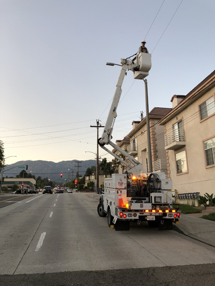 A company using a crane to do some repairs on the roof of an apartment complex on Ocean View Boulevard and the Foothill (210) Freeway on Tuesday evening apparently dropped equipment on, or connected with, the Southern California Edison overhead electrical wires causing far-reaching outages for several hours.